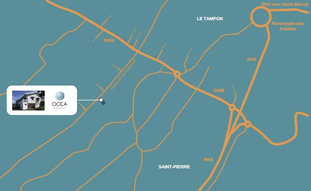 A compter de début mars les bureaux d'OCEA seront situés proche de la RN3 (4 voies) et de la ligne des 400, dans les hauts de Saint Pierre. Au plaisir de vous recevoir dans nos nouveaux locaux !